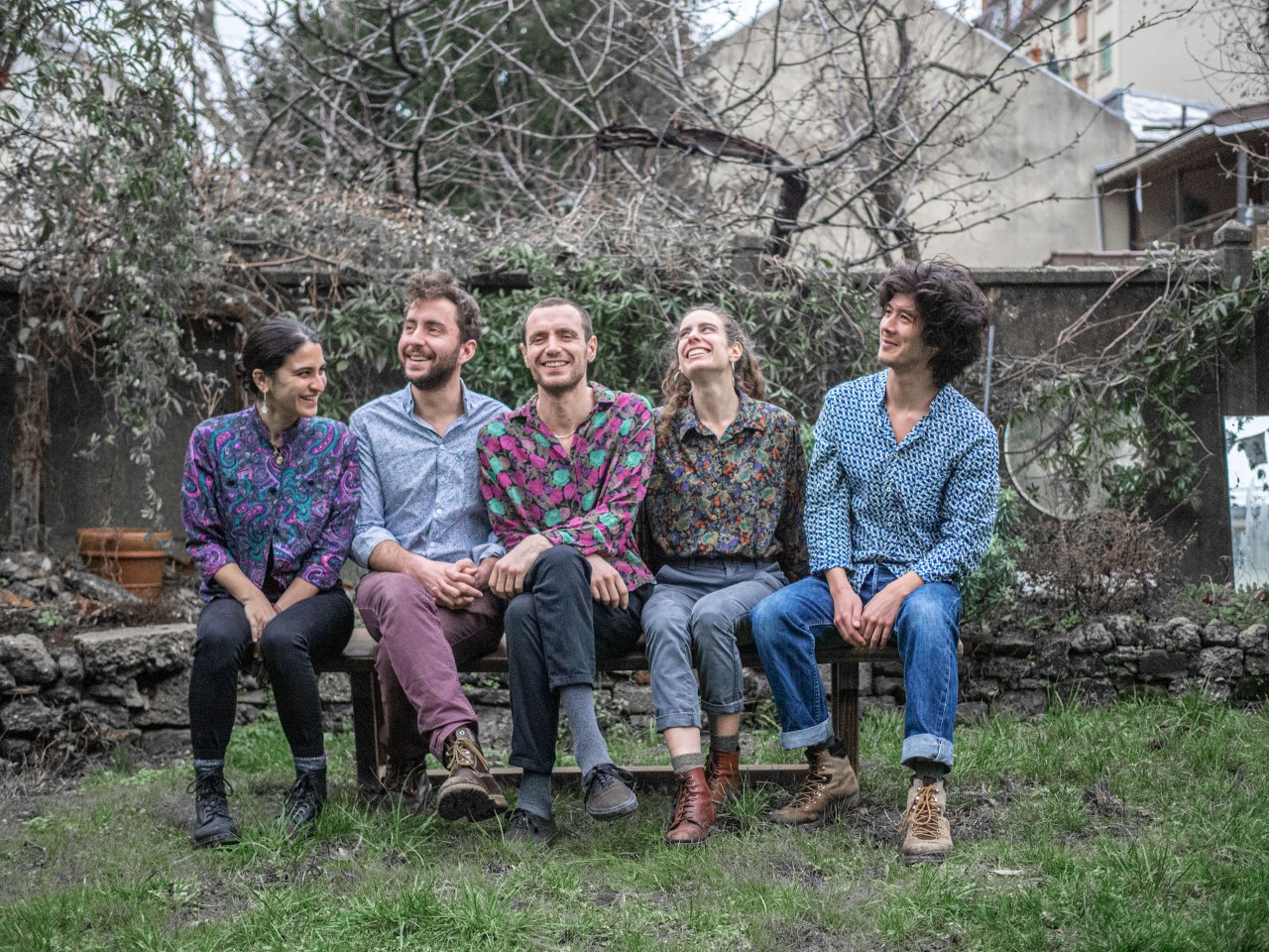 Romane Déconfin, Flöte, Akkordeon, Stimme / Climène Zarkan, Keyboard, Perkussion und Stimme / Vincent Duchosal, E-Gitarre / Louis Prado, Uka-Bass und Stimme / Benoit Joblot, Schlagzeug und Stimme.