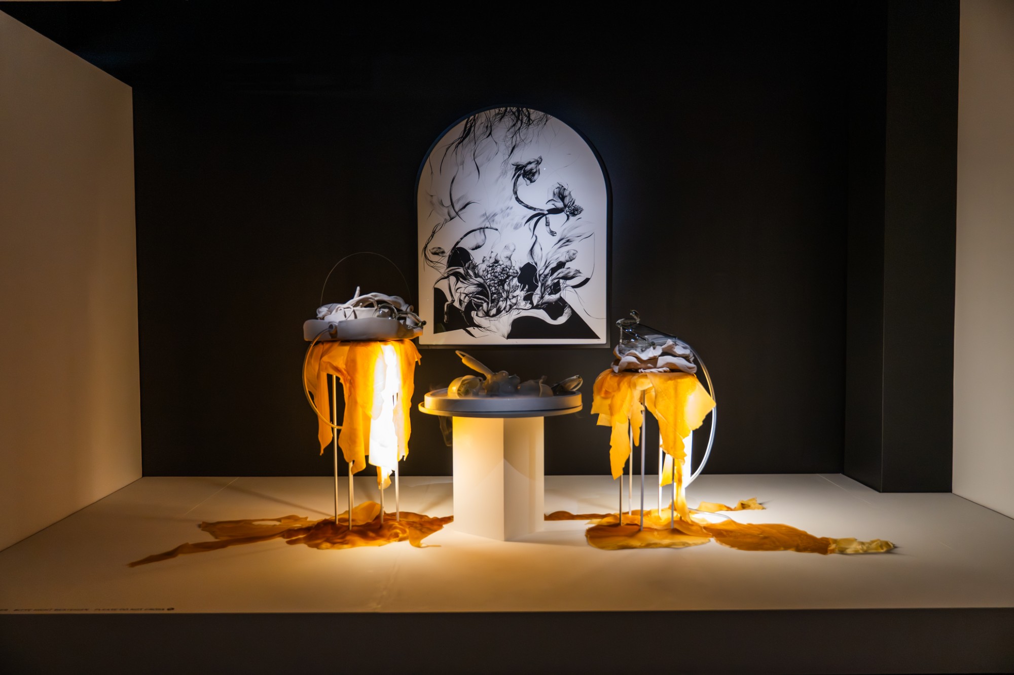 Sous le thème de la métamorphose, l’exposition dévoile les œuvres de sept artistes qui explorent la transformation, le changement et l’évolution. Pascale Ettlin, Elise Grenois, Vardit Goldner, Maryam Khosrovani, Yosra Mojtahedi, Aurélie Scouarnec et Suhail Shaikh révèlent des histoires de corps, de matières et de mondes qui se recomposent. Leurs créations sont des récits de passage, d’un état à un autre, où l’ancien disparaît pour laisser place au nouveau.